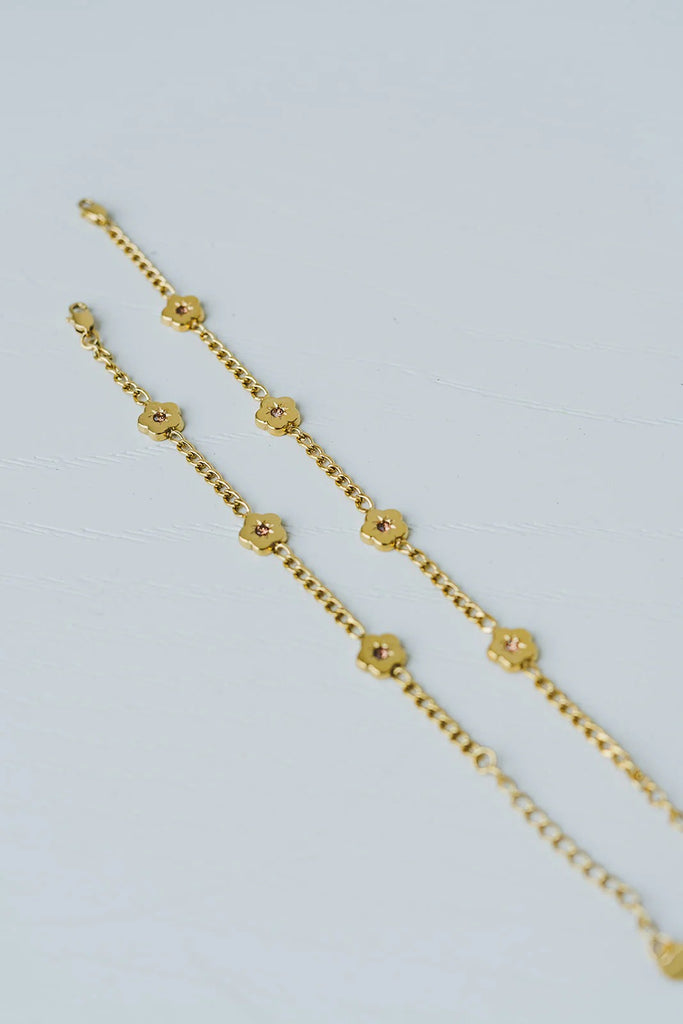 Expertly crafted with a sterling silver base and finished in rich 18ct gold plating, the bracelet features our exclusive flower charms adorned with shimmering zirconia for a soft, elegant sparkle.