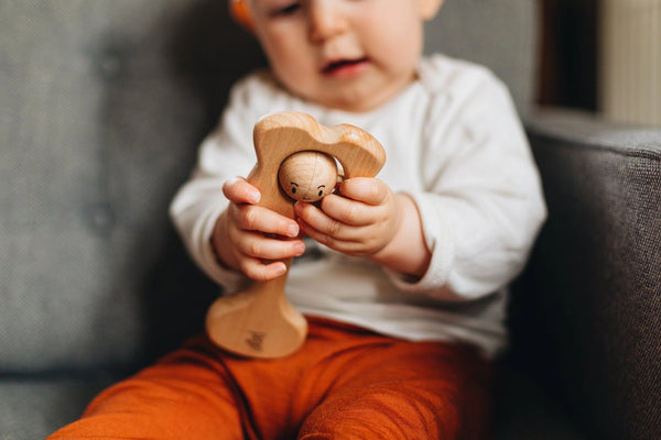 Made from sustainable FSC beech wood and finished in natural beeswax, this rattle provides worry-free playing with zero nasty chemicals and no splintering plastic. Pēpi (meaning baby in Māori) is smooth and safe for teething little ones to bite down on, and when shaken, the fun rattling noise helps develop their senses.