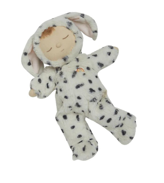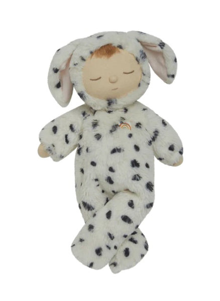 Product Info: ● Cozy Dinkum Dolls can be posed in multiple sleeping positions with their head, arms and legs joined to their body by an interior fabric tape. ● Suitable for ages 0+ ● Cozy Dinkum Dolls wear a non-removable plush onesie with ears and embroidered rainbow over the heart. ● Face features embroidered eyes and mouth with an oval shape nose. ● Gently weighted for added calm. ● Bodies are made from cotton and poly. ● Interior fill contains polyester fibers and plastic pellets. ● Cozy Dinkums packaged in a cotton bag that doubles as a bag to wash your Cozy in!