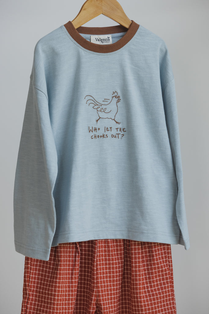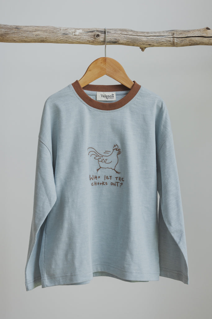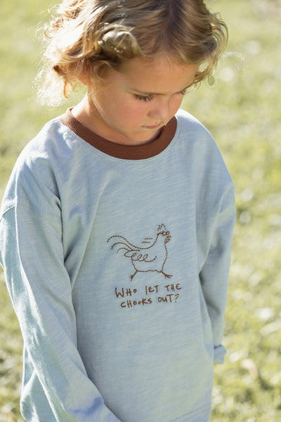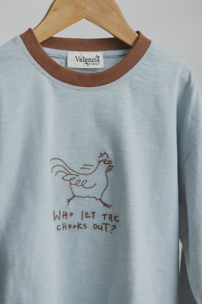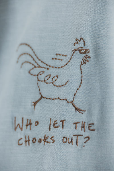 This tee was inspired by our badass chickens as they run free from their pen, with a fun reference to the Baha Men’s early 2000’s pop song. Our artwork is hand drawn in house and brought to life using embroidery.